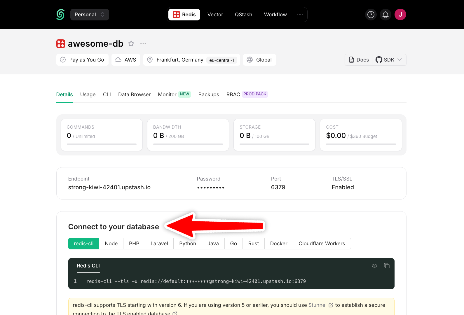 Upstash Realtime is powered by Redis Streams. Grab your credentials from the Upstash Console.