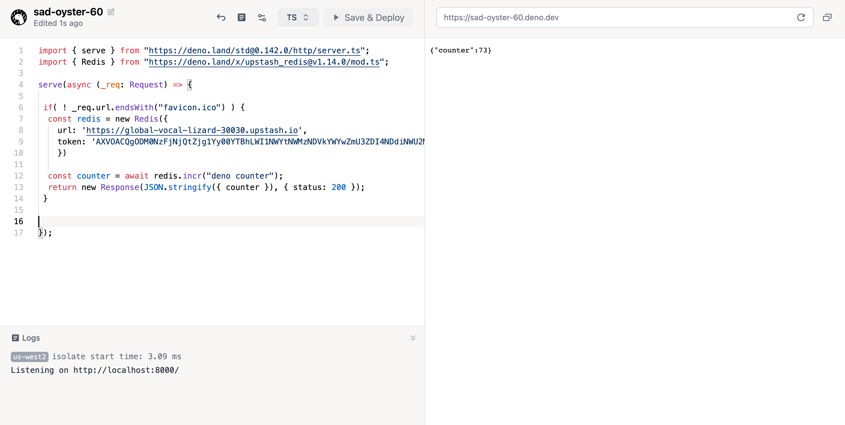 Go to https://dash.deno.com/projects and create a new playground project.