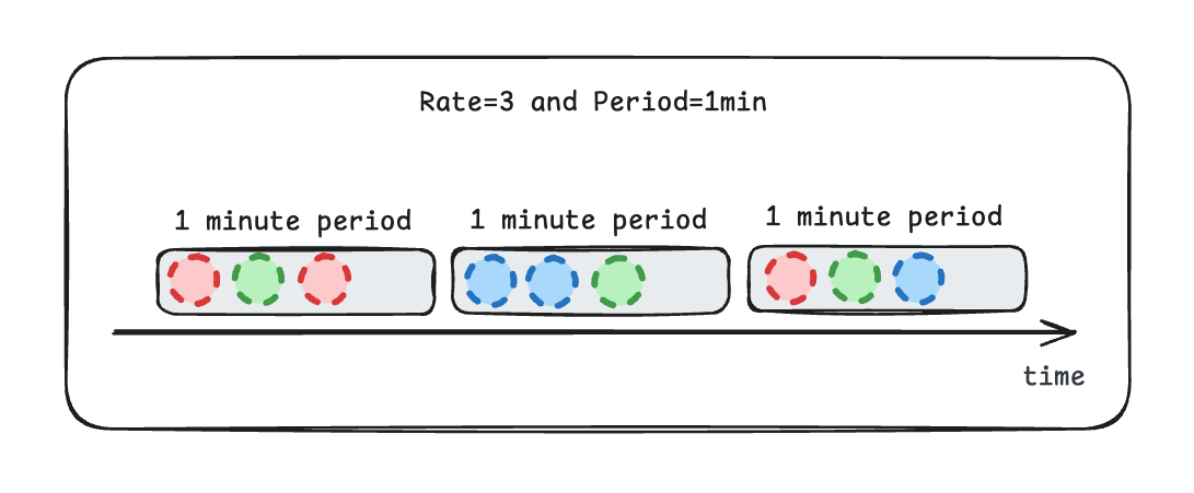 When defined limits are exceeded, Flow Control automatically queues and delays step executions instead of rejecting them. This guarantees that all steps are eventually processed while staying within configured thresholds. To configure Flow Control, you define a flow control key, a unique identifier used to group related steps under the same rate and parallelism limits. The steps that has the same flow control key respect the same constraints. There are two main parameters to configure:- Rate and Period: Maximum number of steps that may start within a time window