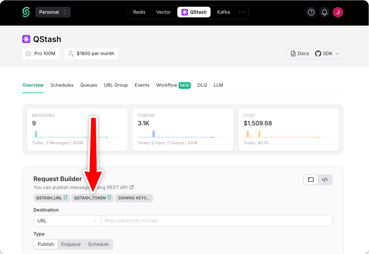 QSTASH_TOKENfrom the Upstash Console. - Update your